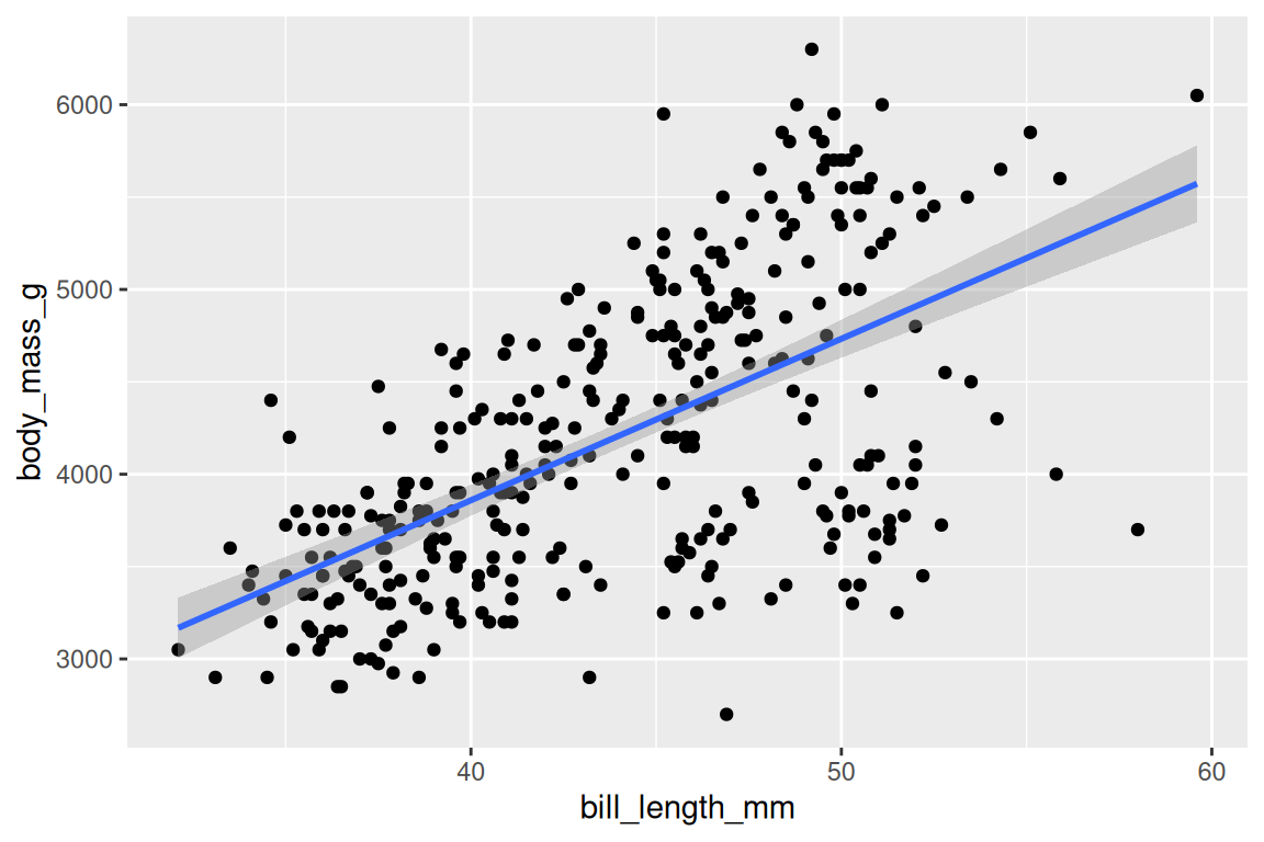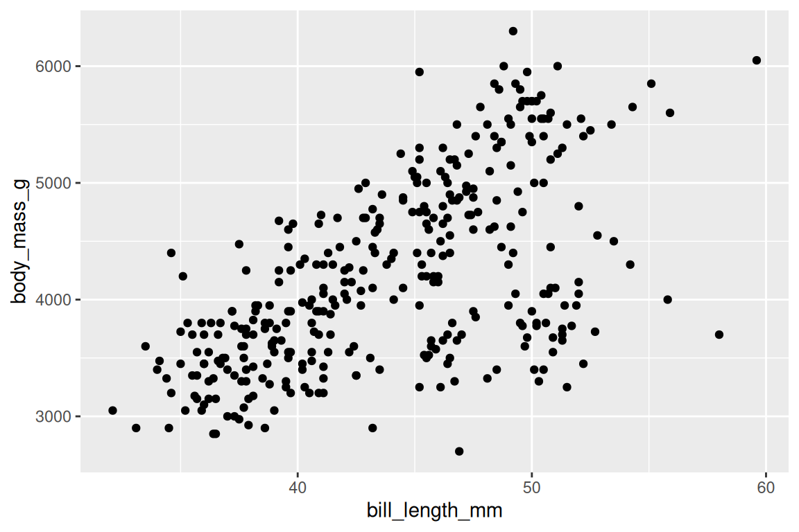 aes(x = bill_length_mm, y = body_mass_g)) +