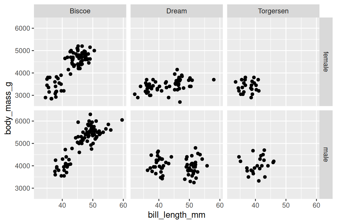 facet_grid(sex ~ island)